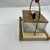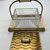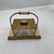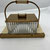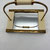 Sehr dekorative Art Deco Keks-Dose, um 1900, mit Glasbehälter auf Spiegelplatte stehend. Gestell und Henkel aus Holz und Messing. Intakter Zustand, kleine Kerbe am Holz, insgesamt mit altersentsprechenden Gebrauchsspuren, jedoch immer noch ein hübscher Eye-Catcher! Masse: L/B/H: 22,5cm; 15cm; Höhe inkl. Henkel: 18cm.