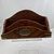 Dekorative Holz Schreibtisch-Briefablage, vorne mit hübschem, goldenem Ornament. Guter Zustand. Länge: 30cm; Breite: 10 cm; Höhe: 18 cm.