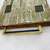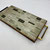 Untersetzer (dessous de plat) mit für die 60er Jahre typischem eingelassenen Keramikmosaik. Solide rustikal anmutende Holzfassung. Zwei Metallhandgriffe mit innenliegendem Kunststoffbelag als Hitzeschutz. Rechteckig.. Massiver Holzkern. Auf der Unterseite vier blaue Kunststoff-Füsschen. Guter gebrauchter Zustand. Der Untersetzter wurde gereinigt, das Holz behandelt. Abmessungen (LxBxT (cm 39x18x3.