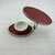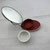 Rarität, Einzelstück! Antikes Spiegel-Schmink-Set, allenfalls auch Reise-Set. Zusammen- klappbar, mit ovalem Spiegel und kleine, weisser Porzellan-Schale für Puder oder Crèmes. Sockel und Schalenbehälter roter Kunststoff, resp. Metall, Spiegel hinten mit rotem Kunststoff. Sockel und Spiegel mit hübscher Alu-Einfassung. Einfacher Metall-Klappmechanismus hinten für Spiegel. Herkunft vermutlich Germany (Markierung Schale). Ein absolut bezauberndes, nostalgisches Teil aus vergangener Zeit auch wunderbar als Deko verwendbar. Auf jeden Fall ein eindrucksvoller Eye-Catcher! Guter gebrauchter Zustand mit alters- entsprechender Patina, intakter Spiegel. Länge Sockel: ca. 15cm; Breite Sockel: ca. 10cm; Höhe bei geöffnetem Spiegel: 19cm; Höhe zusammengeklappt: 8cm.